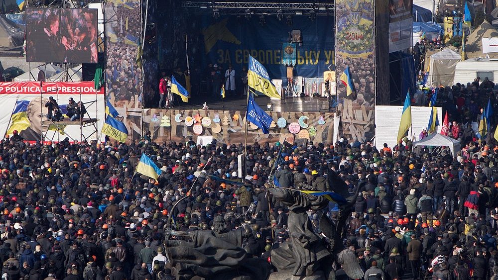 En 2014, l’Euromaïdan, nait d’une exaspération contre Victor Ianoukovitch (réélu en 2010), chef d’un état endetté, corrompu et qui avait mis fin aux négociations pour l’entrée dans l’Union Européenne. Une révolte populaire massive (un million de personnes sur la place Maïdan), sera associée à des forces nationalistes anti-Russes violentes. La Russie va prétendre que ces forces étaient soutenues par les U.S.A. Le but d’Euromaïdan était d’en finir avec la corruption, de redonner le pouvoir au peuple, de rompre avec la dépendance à la Russie et de rapprocher l’Ukraine de l’Union européenne. Au début populaires, les manifestations deviendront violentes et seront réprimées par la force. L’Euromaïdan va provoquer la chute du régime, et le mécontentement très fort de la Russie.