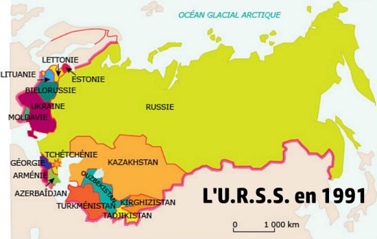 L’U.R.S.S. était formée de 17 républiques. Cette dissolution est le résultat d’un lent processus de désintégrations politique, économique et ethnique, internes. Cet événement fut qualifié, par Vladimir Poutine, de plus « grande catastrophe géopolitique du 20° siècle » . A son origine, l’intensification du sentiment national dans toutes ces républiques, et le rejet de la domination Russe, qui donneront lieu à plusieurs crises, dont la Géorgie en 1978, l’Arménie en 1988, l’Azerbaïdjan en 1990, et enfin la Tchétchénie en 1991. L’U.R.S.S., organisation multi-ethnique, n’a pu proposer un nouvel avenir à toutes ses nations, dont les régimes socialistes s’effondrèrent après la chute du mur de Berlin en 1989.