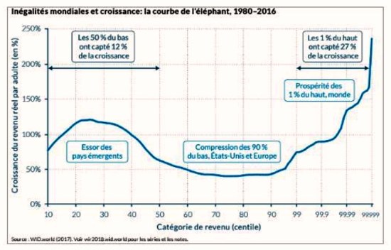 Graphique 5 : Inégalités mondiales et croissance (1980 – 2016)