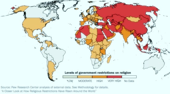 Graphique 7 : restrictions des religions selon les états dans le monde