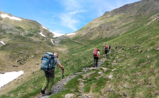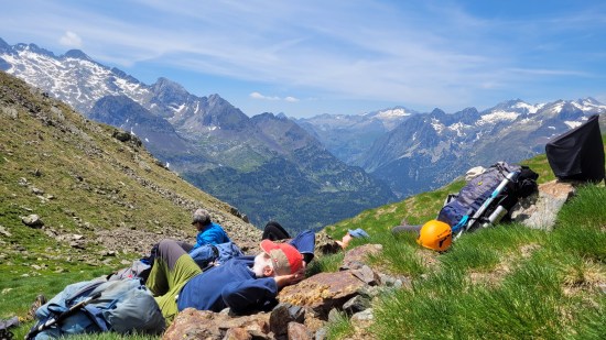 Grosse journée à galérer jusqu’au port Vieil…. Nos monitrices Annie et Anna nous quittent. remplacées par Alain et Nicolas. Arrivée aussi de Jean Louis et Dalila venus de l’Ariège. Le refuge du Maupas, sans douches (toilette au ruisseau) et w.c. rudimentaires, a plu à tous. Retour complet à la nature dans la bonne humeur. Grâce à Yannick nous avons appris plein de choses sur les Ours dans le Pyrénées (et au Couserans en particulier).