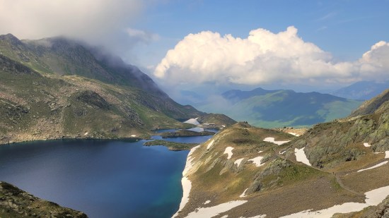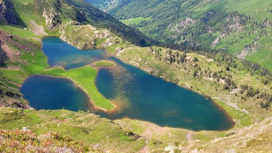 Descente par les lacs Célinda, Charles et Bleu, pour aller dormir au refuge du Maupas.
