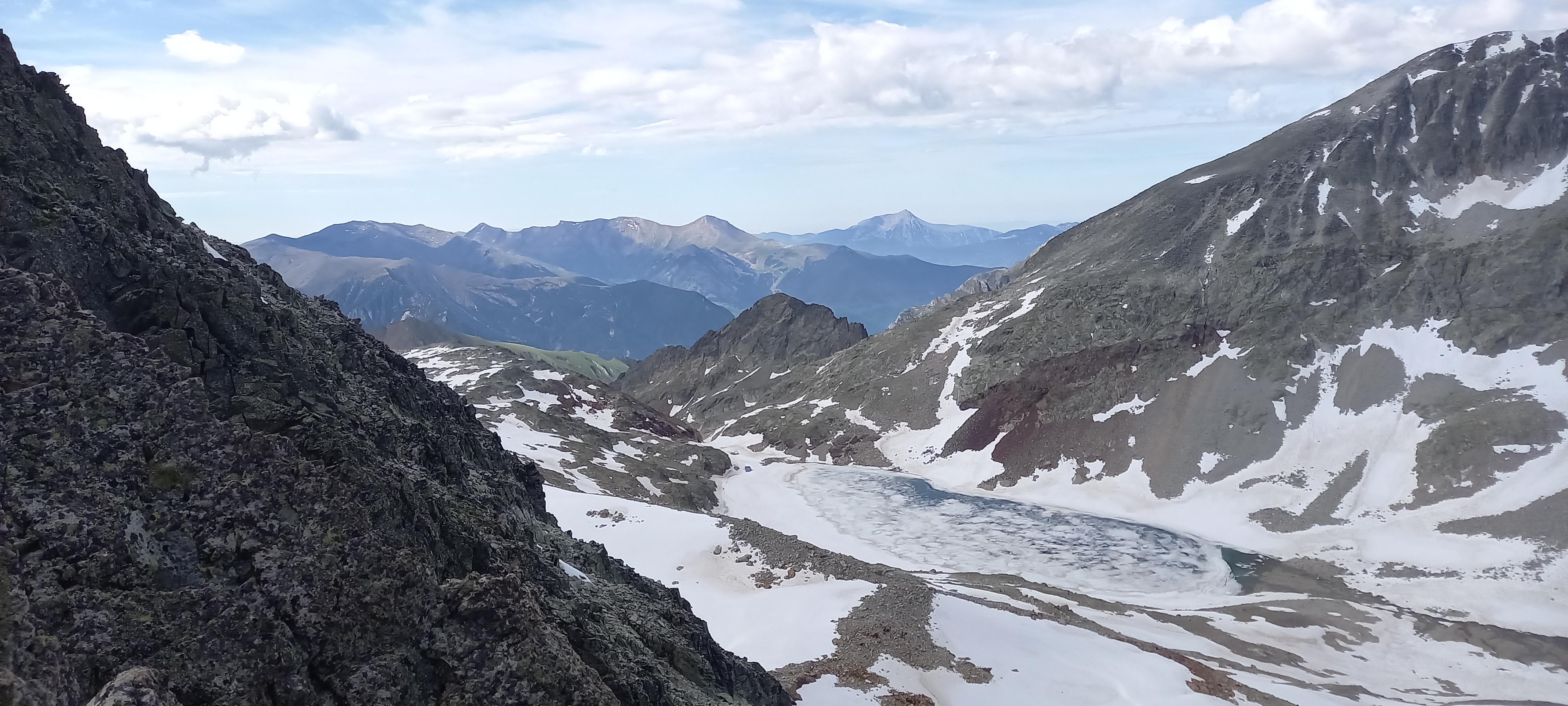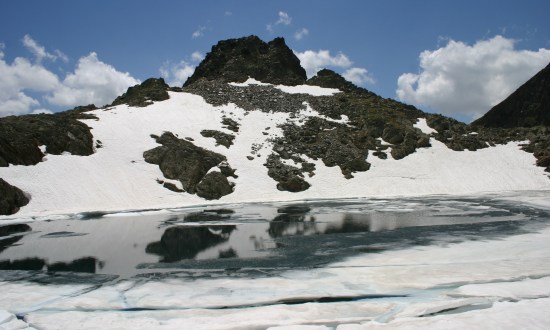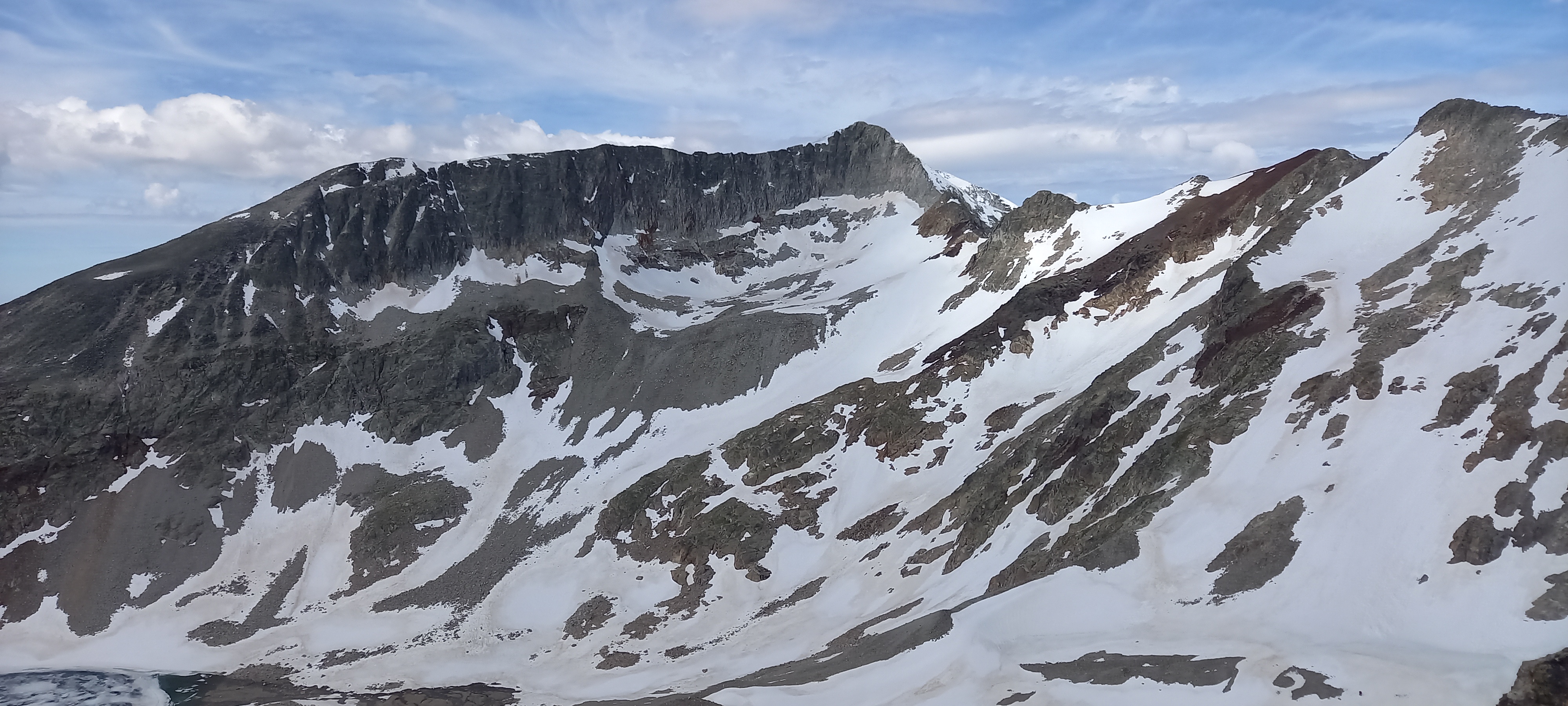 Le temps est maussade et nuageux. Deux ascensions sont donc déprogrammées (Seil de la Baque et les Spigeoles. La journée débute par la Tusse de Montarqué gravie avec le groupe « Escalade » (qui ne sont plus que 4). Ensuite le lac glacé sous les Gourgs Blancs, puis on passe sous le Gourdon et les Spigeoles, enfin descente vers « Saussat » pour arriver au refuge d’Espingo.