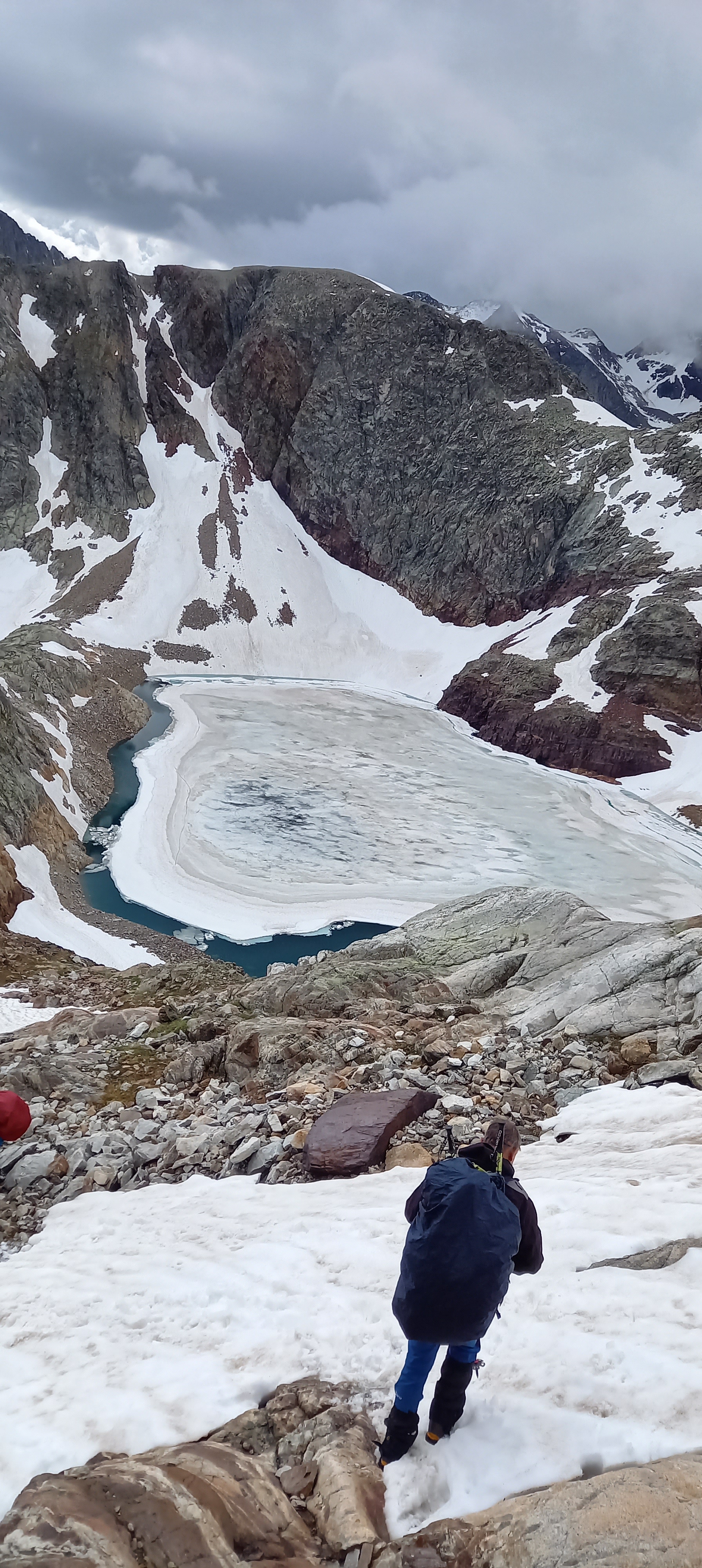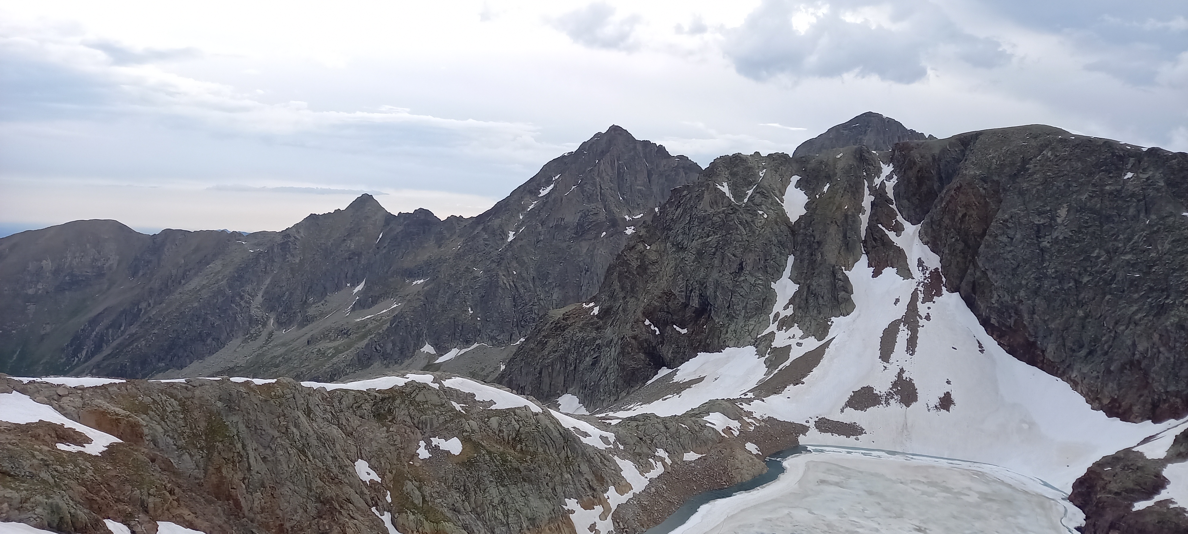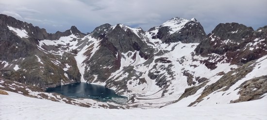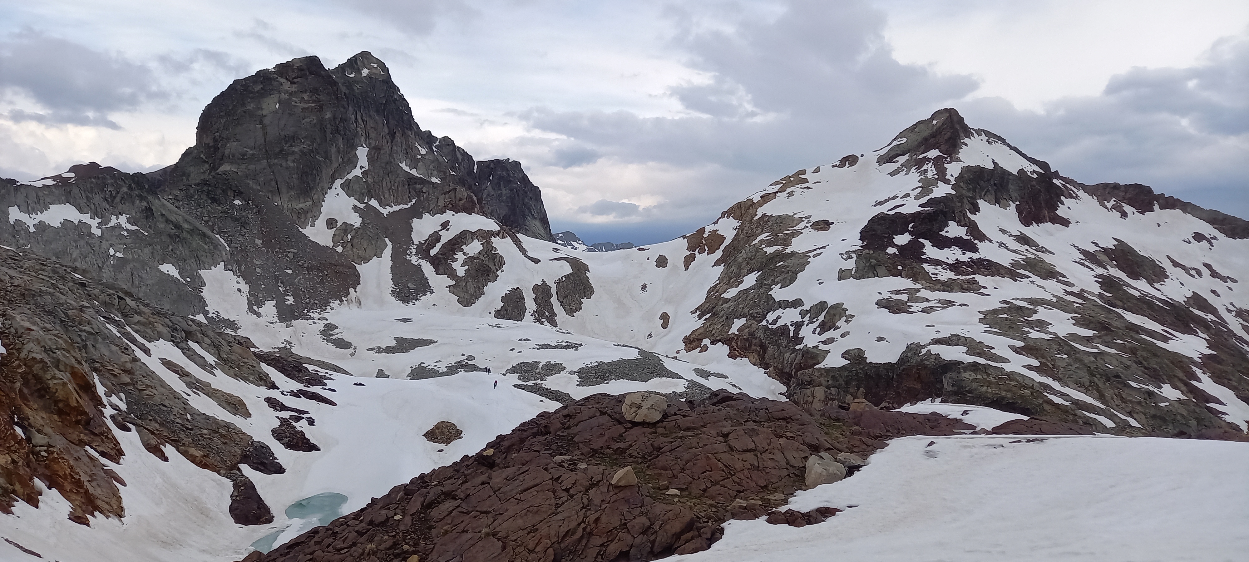 Le cirque du Portillon, atteint après la descente par le pierrier qui était sous le glacier du Portillon. Arrivée au refuge pour la 3° nuit. Tout va bien mis à part la pluie nocturne.