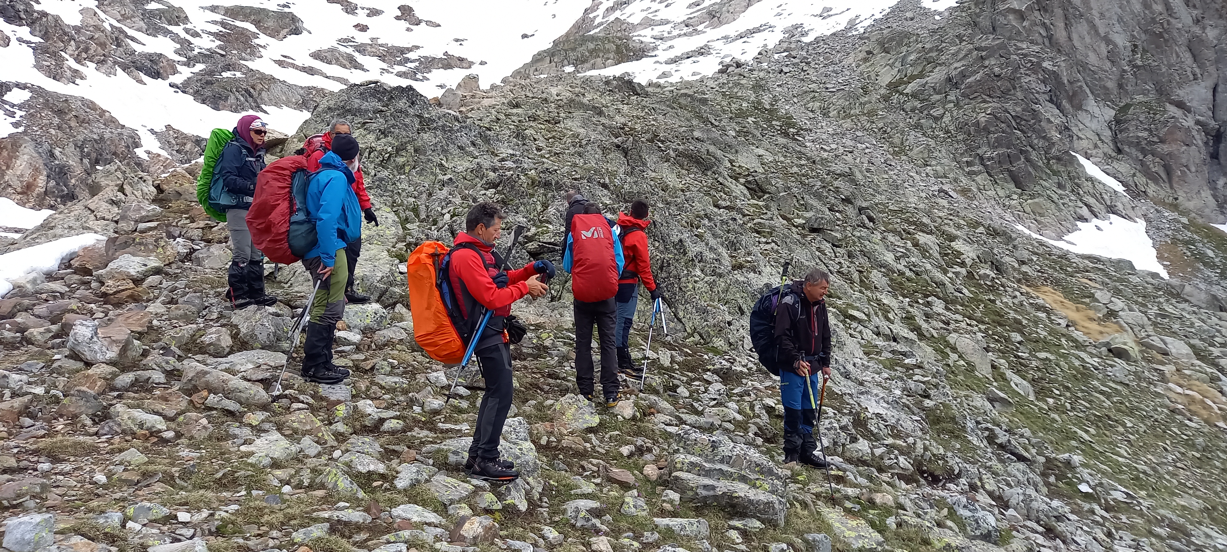 Chaque groupe comptait 8 participants et 2 encadrants, avec possibilité de changements selon les disponibilités de chacun. Les 2 groupes se dispersaient le matin pour suivre leurs itinéraires et se retrouvaient le soir aux refuges. Au total 20 « Cafistes » ont participé à ce séjour (15 hommes et 5 femmes âgés de 33 à 76 ans).